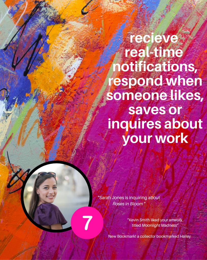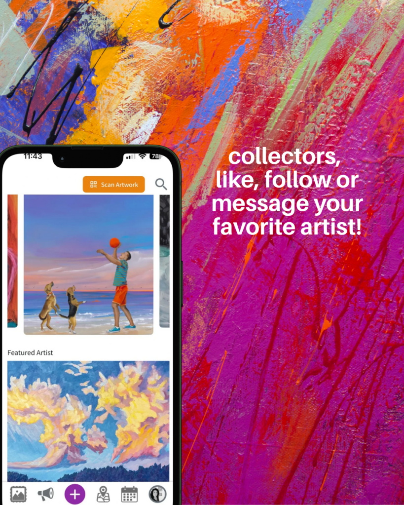 The Pulse is the heartbeat of the local art scene. Real-time updates from artists, galleries, and collectors all in one scroll. Share what you’re up to or discover what’s happening now. You’ll see this activity in real-time through the app.